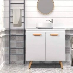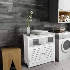 EUGAD Waschbeckenunterschrank Unterschrank Badezimmerschrank mit Tür 60 x 30 x 62 cm Grau-Weiß