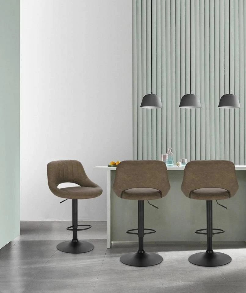 EUGAD Barhocker, 4er-Set Tresenhocker aus Kunstleder Gestell aus Stahl Dunkelbraun Anthrazit, Grau