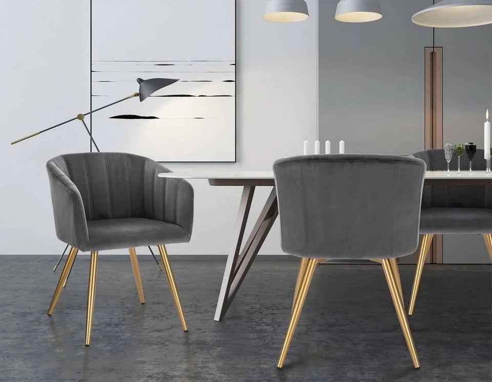 - 2er-Set Esszimmerstuhl Polsterstuhl aus Samt