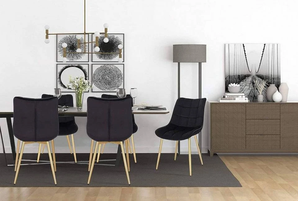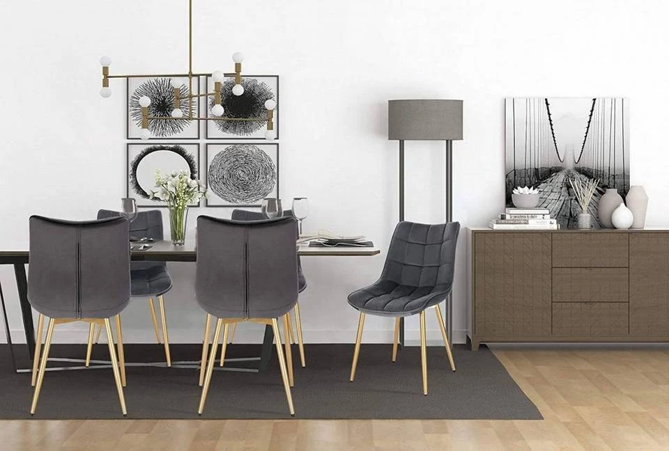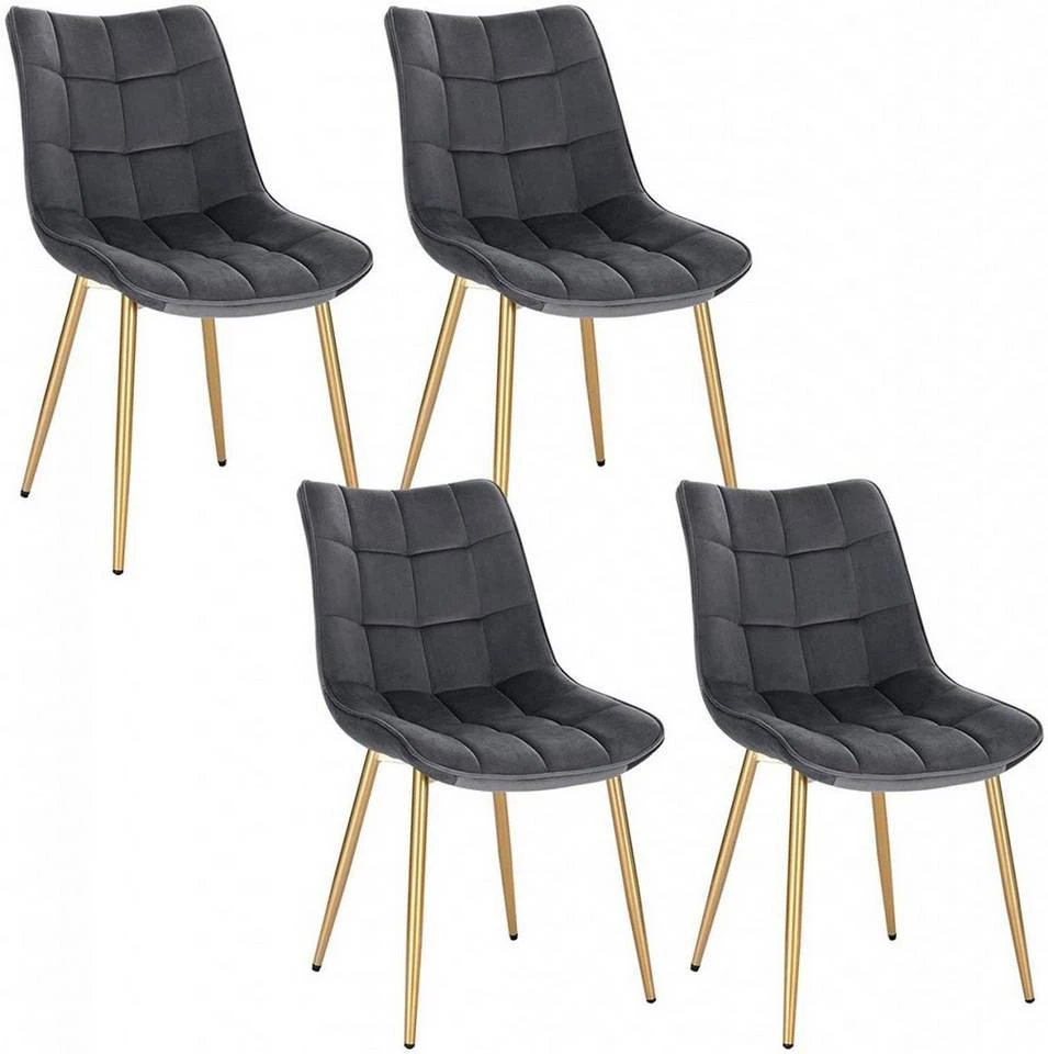 - 4er-Set Küchenstühle aus Samt goldene Beine