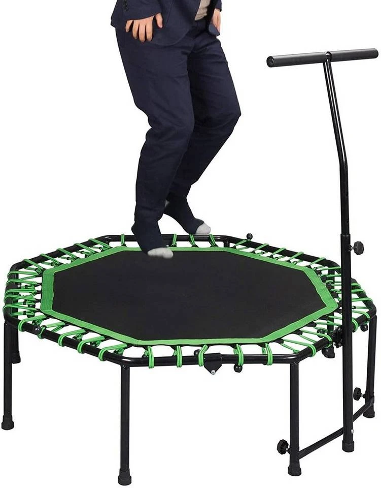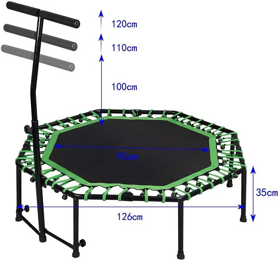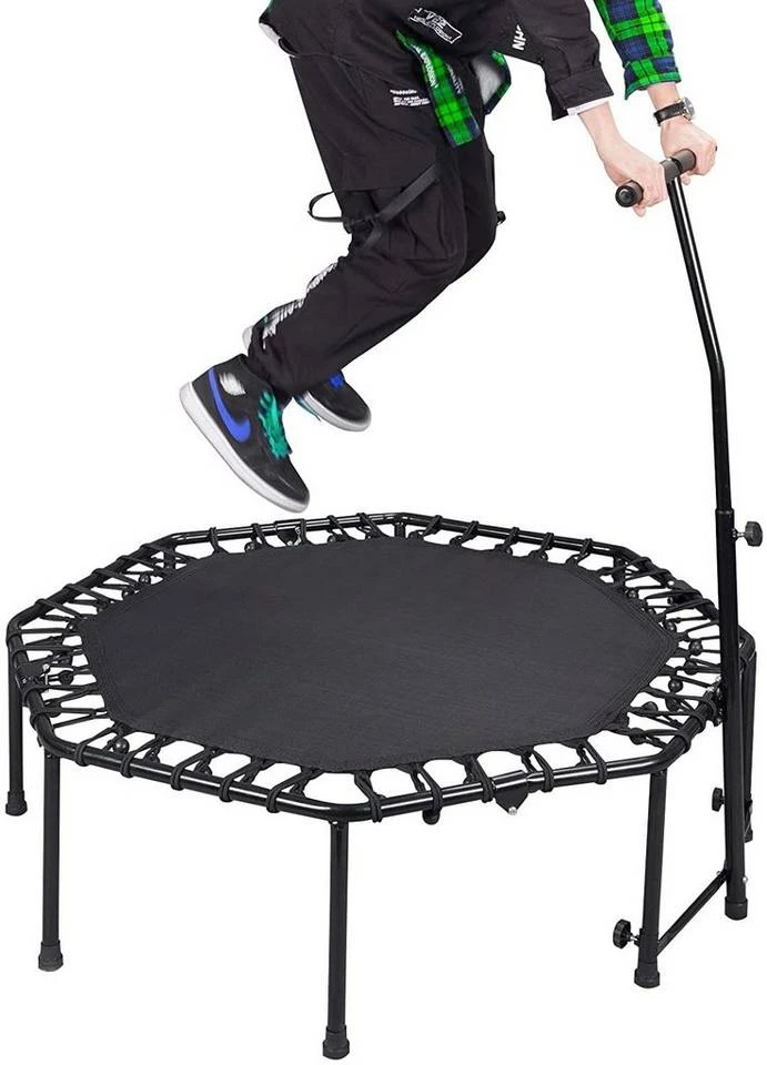 | Besondere Merkmale | Fitness Trampolin Indoor Faltbar Ø 126cm mit höhenverstellbarem Haltegriff, leise Gummiseilfederung, belastbar bis 120 kg |