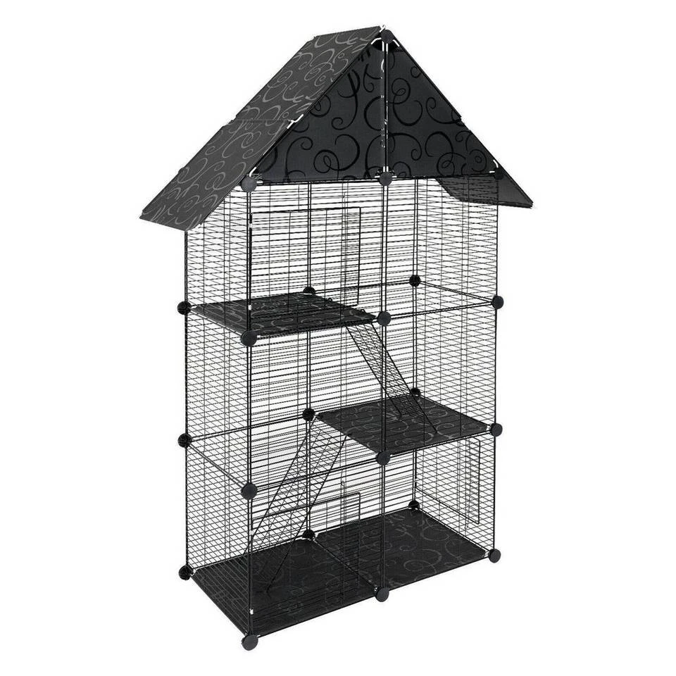 - Kleintierkäfig Katzenkäfig Schwarz 75x39x145cm