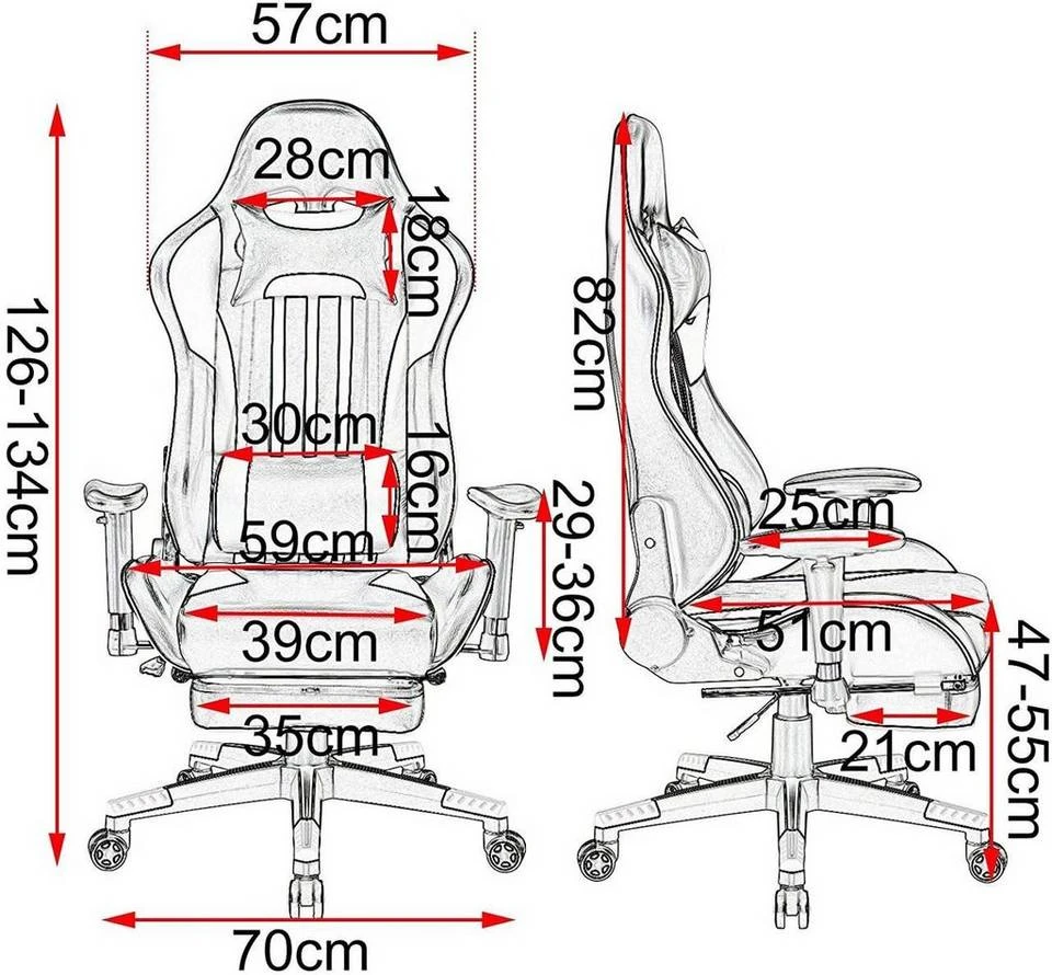 - Gaming Stuhl mit Kopf- und Lendenkissen, beim Sitzen wird Ihre Wirbelsäule unterstützt. Sodass Sie weinger Rückenschmerz nach längere Sitz am Tisch bekommen.