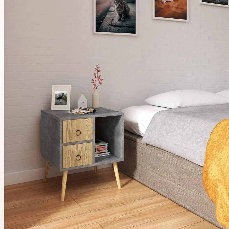 - Mit 2 Schubladen, 1 offenem Fach und 1 flacher Tischplatte bietet der Nachttisch geräumigen und individuellen Platz für Ihre Gegenstände.
