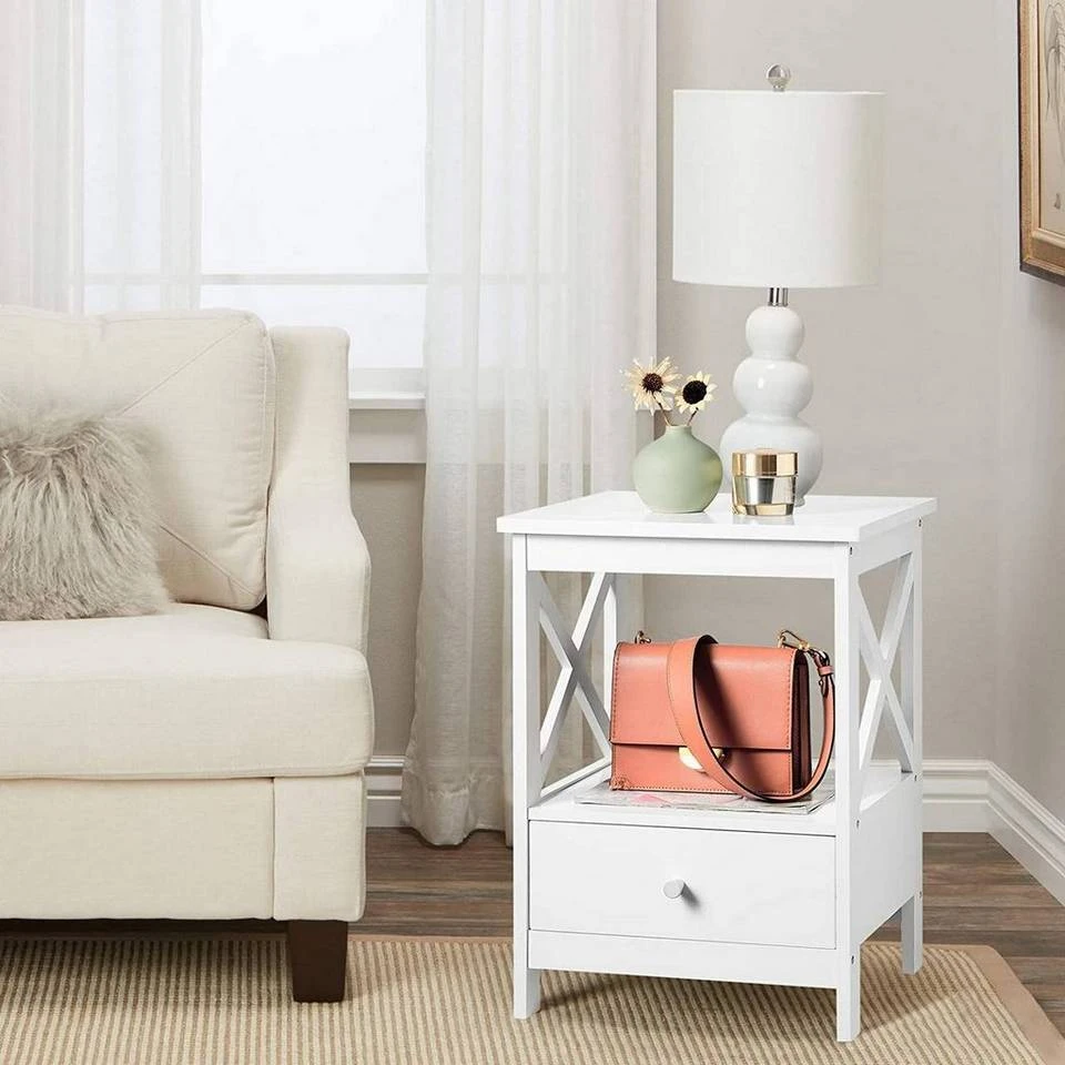 - Der ganze Nachttisch sieht zierlich und süß aus. Weiße und einfache Form kann zu fast jedem Zimmerstil passen.