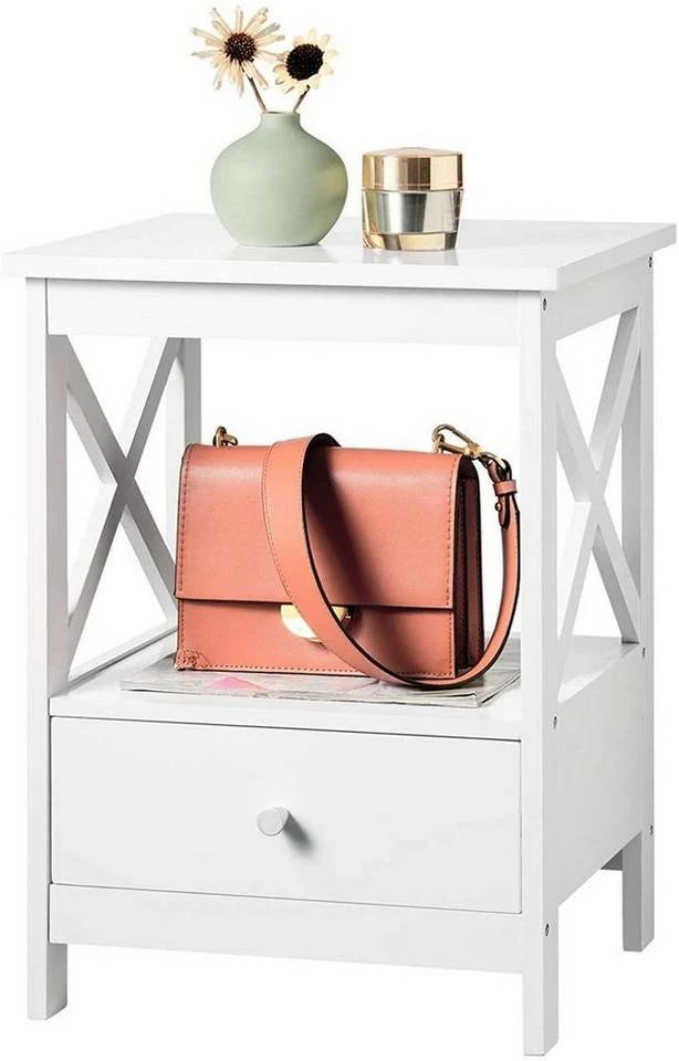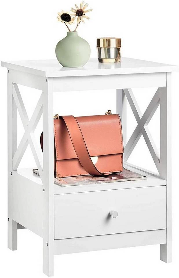 - Nachttisch aus MDF unten mit Schublade Ablage weiß