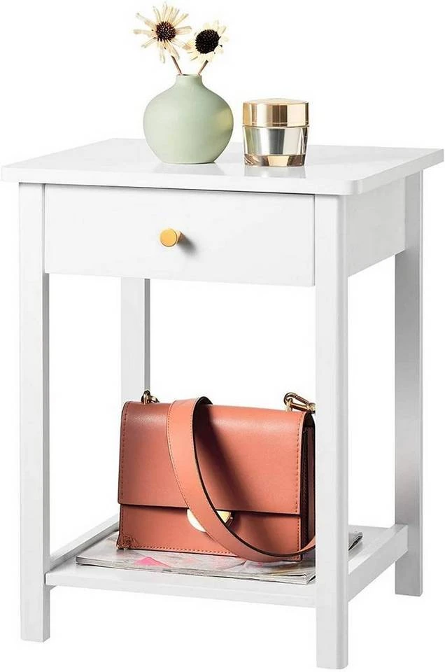 EUGAD Nachttisch, Nachtkommode Sofatisch Kaffeetisch Beistelltisch Nachtschrank für Wohnzimmer Schlafzimmer mit Schublade mit Ablage aus MDF Weiß