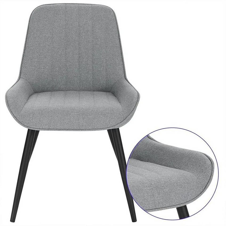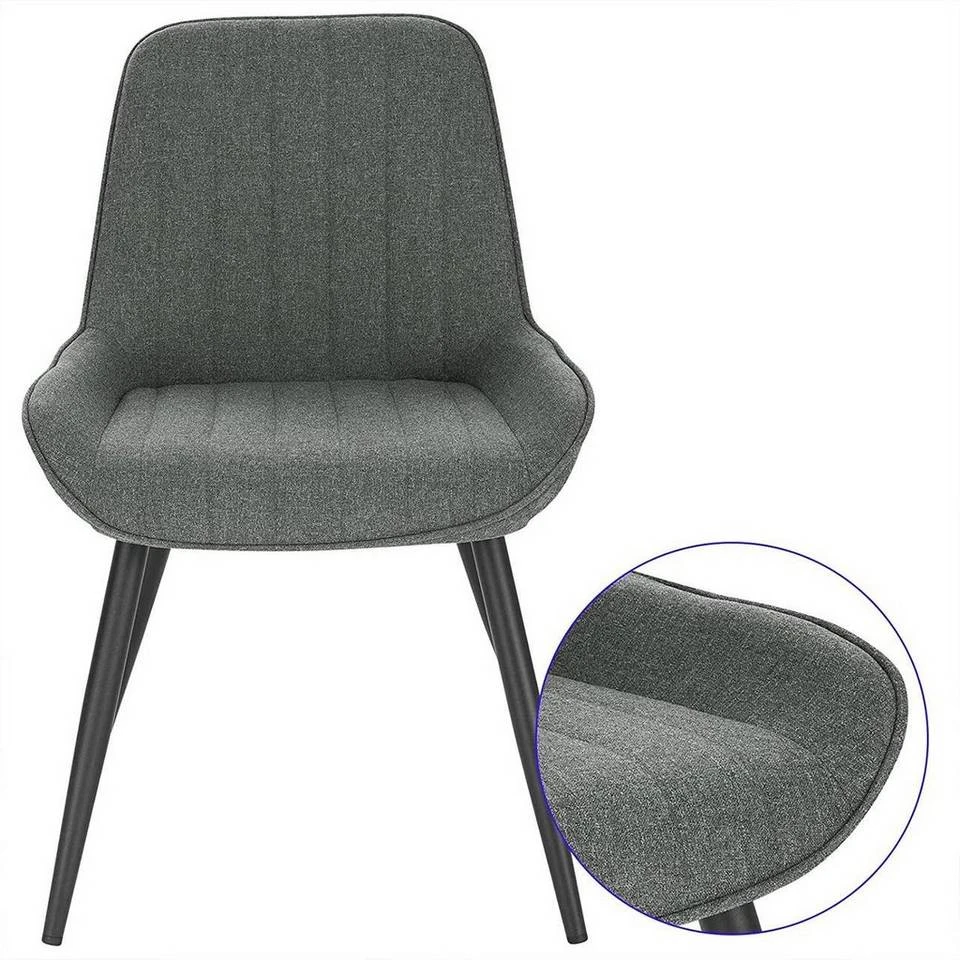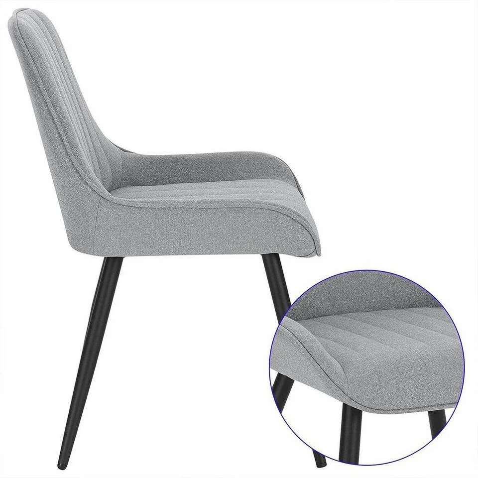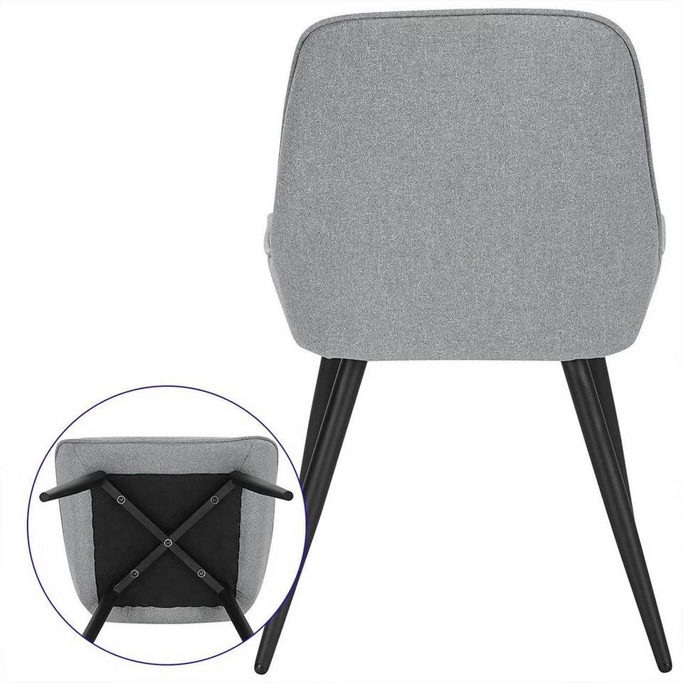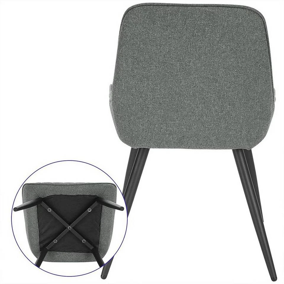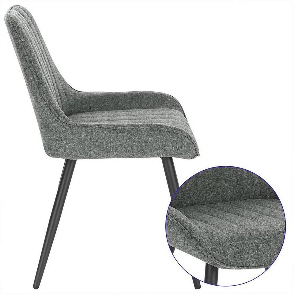 Die Beine des Esszimmerstuhls sind aus sehr stabilem Stahl, die Sitzfläche ist aus Leinen hergestellt.