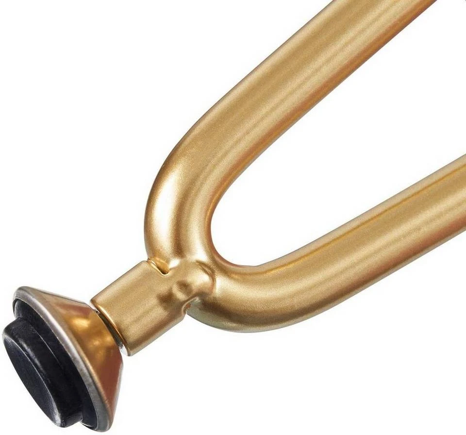 - Die weiße glänzende Tischplatte mit goldenen V-förmigen Beinen macht das Möbelstück einfach, aber stilvoll. Er lässt sich leicht in moderne Wohnräume integrieren.