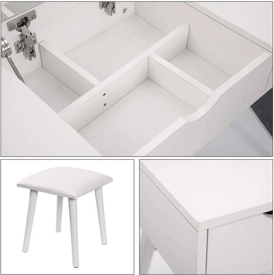 - Großzügige Stauraum, der Schminktisch verfügt über 2 Schubladen und eine Ablagefläche unter dem Spiegel, die sich ideal zur Aufbewahrung von Make-up und sonstige Accessoires eignen.