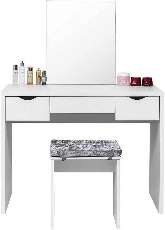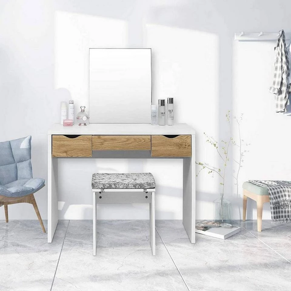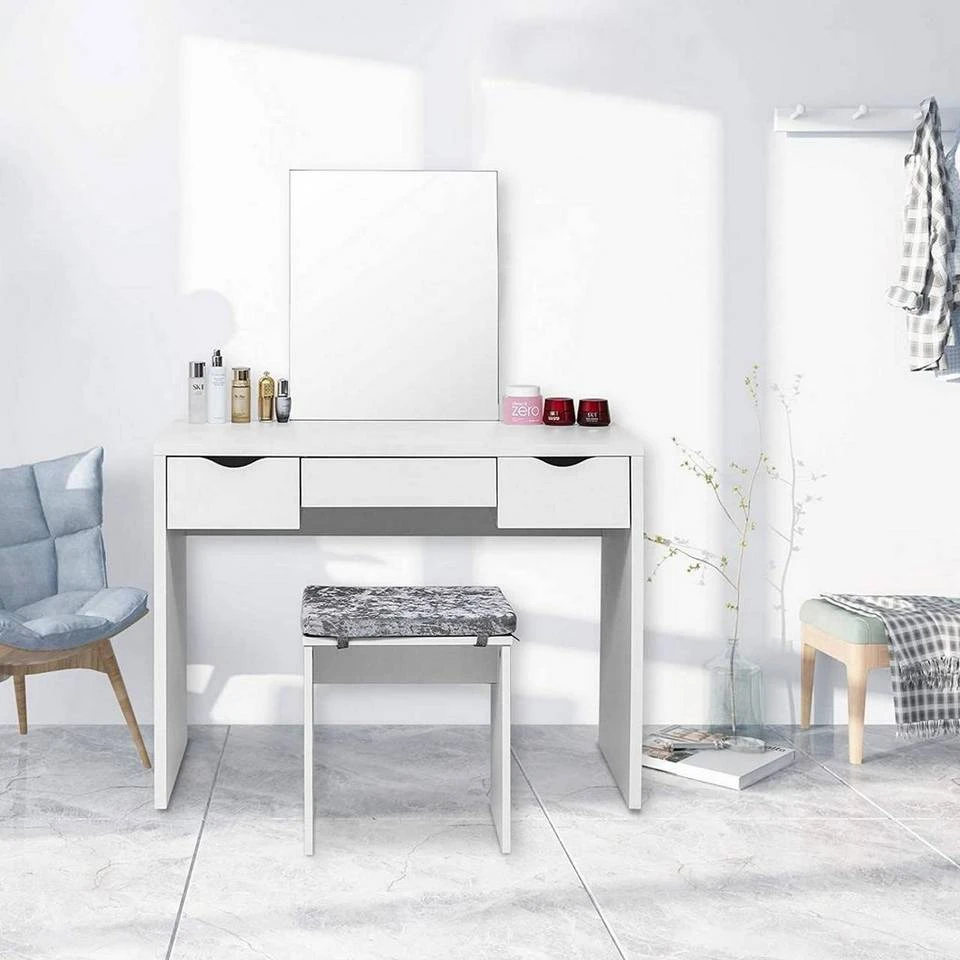 - Schminktisch 3 Schubladen mit Hocker und Spiegel