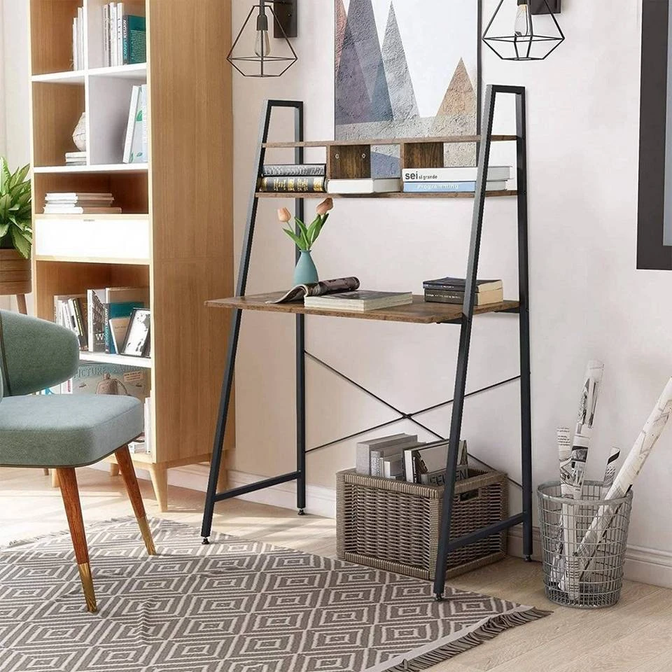 - Schreibtisch PC Tisch mit Ablage Holz Stahl