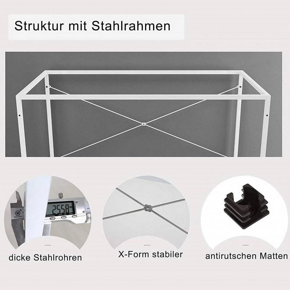 - Alle Metallteile und Stahlrahmen sind rostfrei