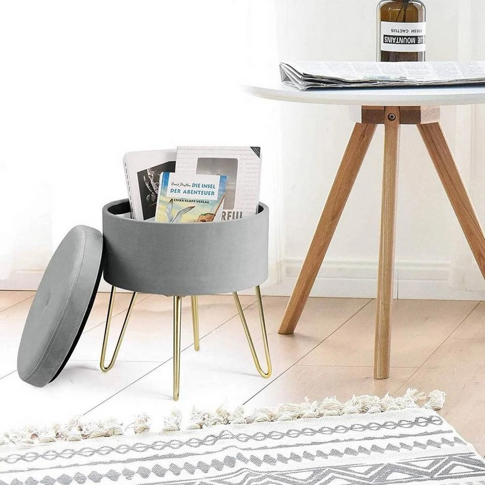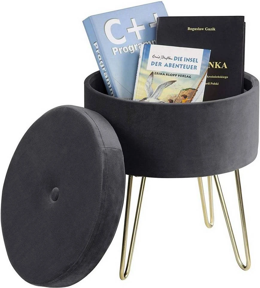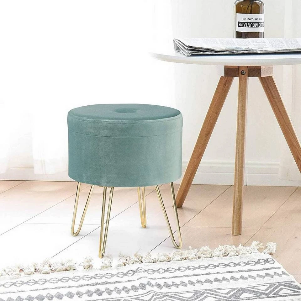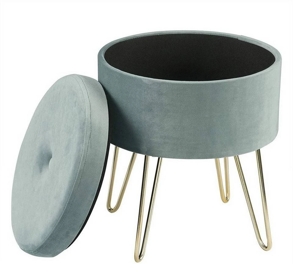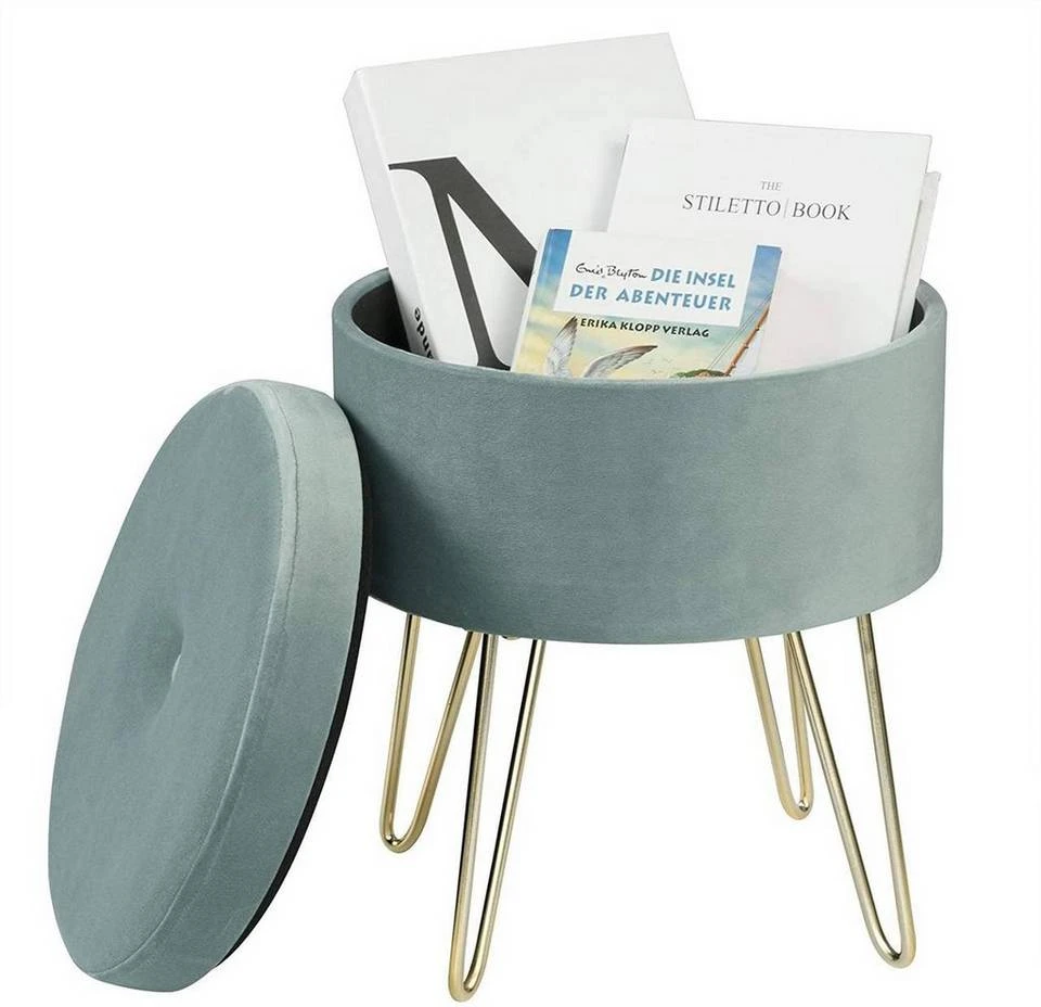 EUGAD Sitzhocker, Samthocker mit Stauraum, rund, mit stabilen goldenen Metallfüßen, Türkis Dunkelgrau, Dunkelgrün, Hellgrau, Rosa, Türkis
