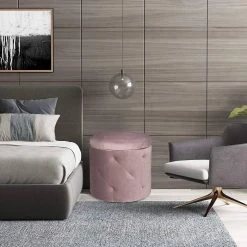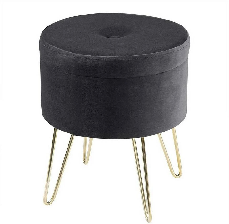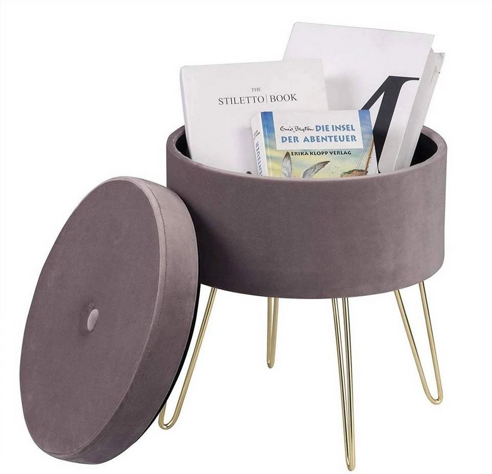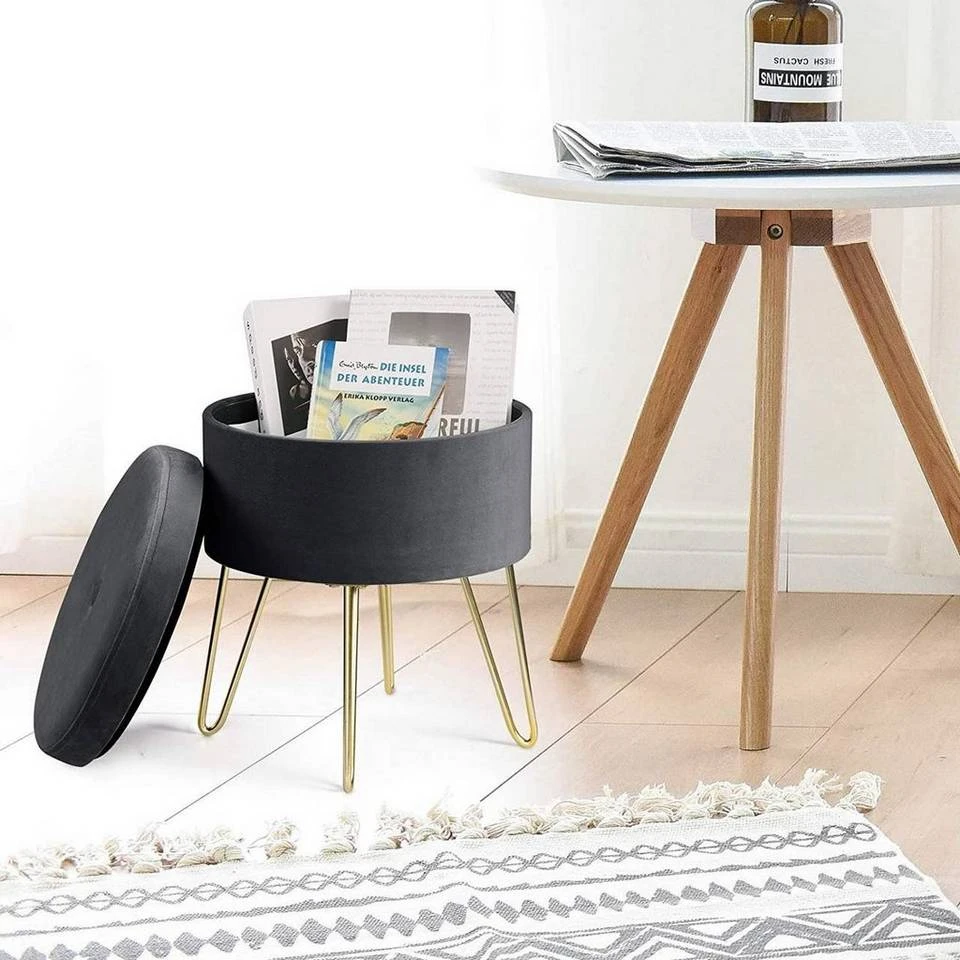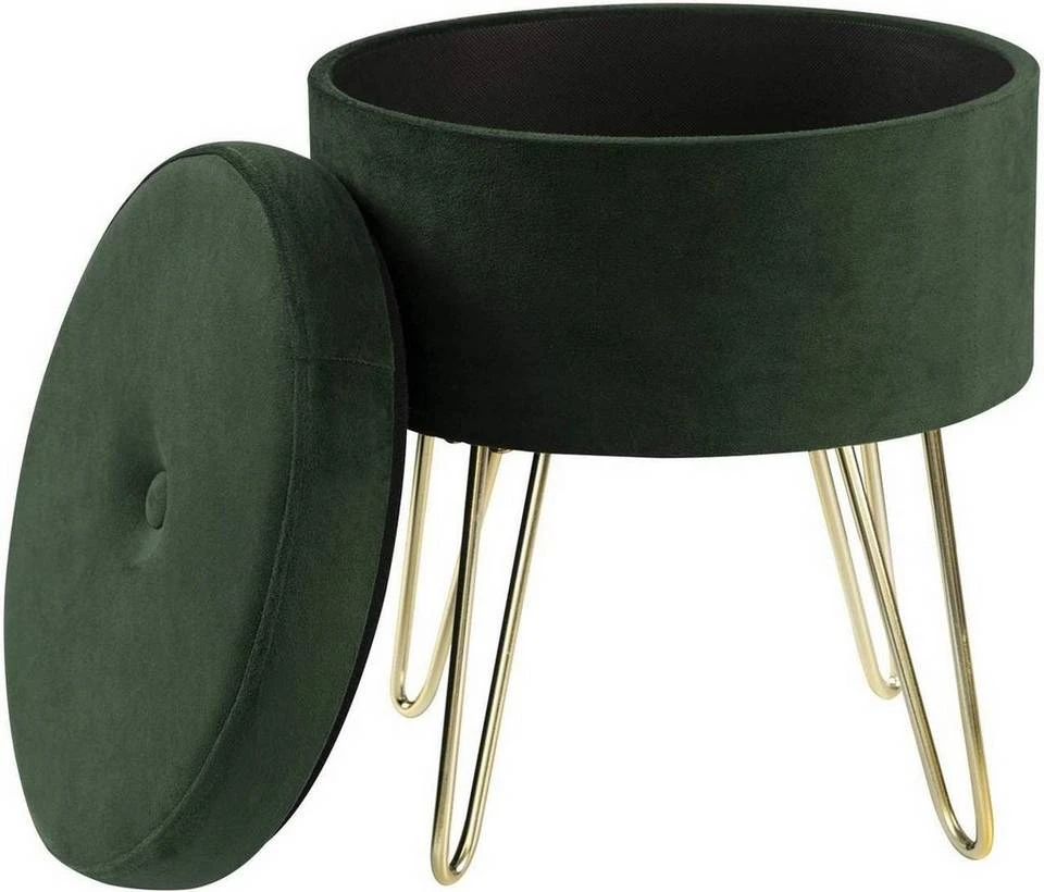 EUGAD Sitzhocker, Samthocker mit Stauraum, rund, mit stabilen goldenen Metallfüßen, Türkis Dunkelgrau, Dunkelgrün, Hellgrau, Rosa, Türkis