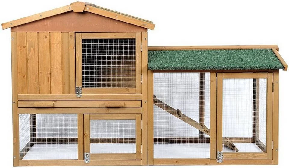 - Natürliches Lebensumfeld: Der Stall ist aus natürlichem Massivholz hergestellt und sorgt für das natürliche Lebensumfeld des Haustieres. Das Dach dieses Stalls ist mit grüner wasserabweisender Teerpappe bezogen. Daher eignet sich dieser Hasenstall perfekt für die Außennutzung