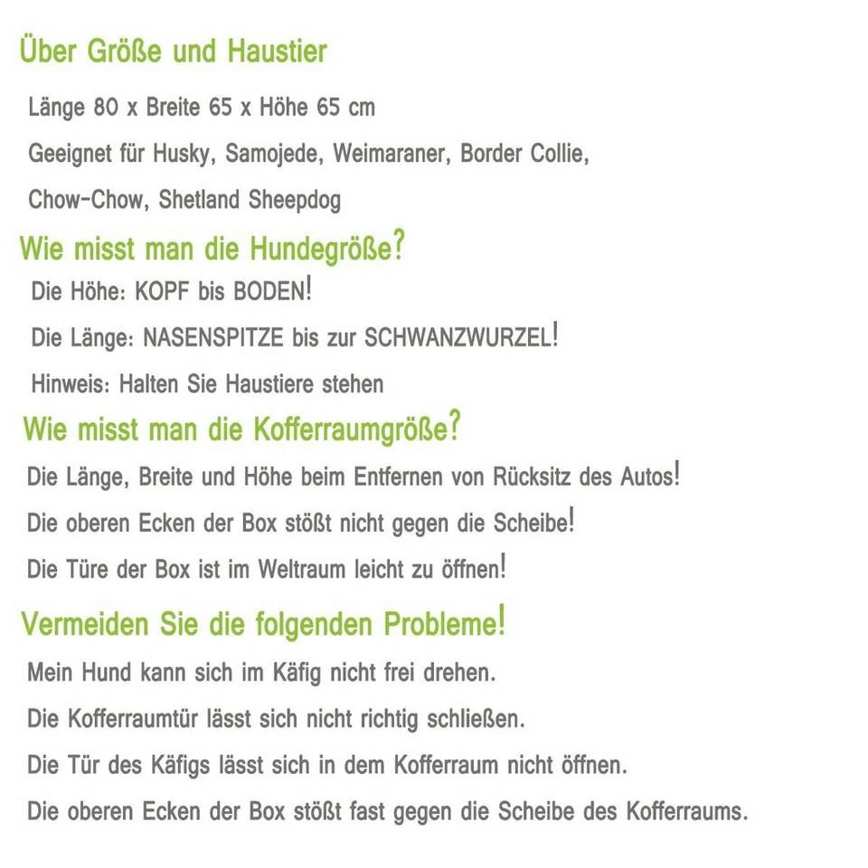 Bitte messen Sie vor dem Kauf die Größe Ihres Haustieres und Kofferraums!