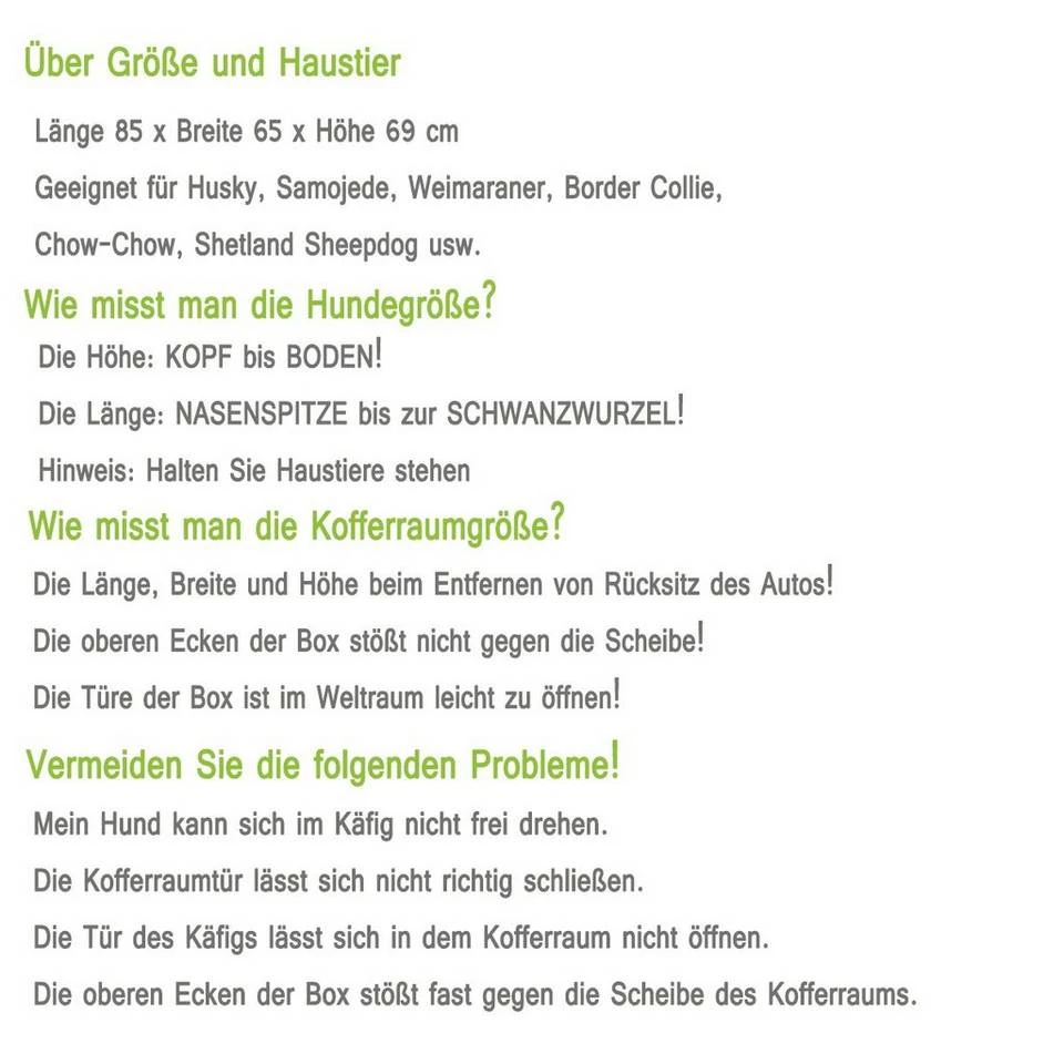- Bitte messen Sie vor dem Kauf die Größe Ihres Haustieres und Kofferraums!