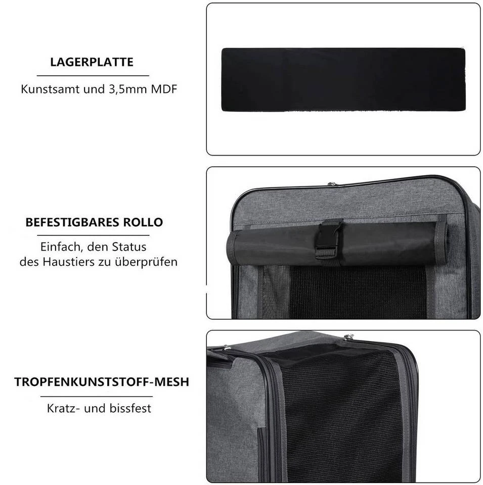 - Die faltbare Tasche kann bei medizinischen Behandlungen, bei der Tierpflege, beim Autofahren, beim Ausgehen und bei Spaziergängen eingesetzt werden.