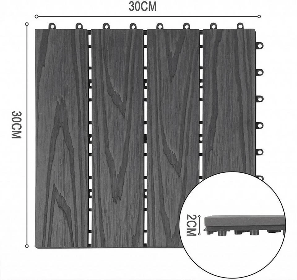 - 22 Stück WPC Terrassenfliesen 30x30cm Holzstruktur