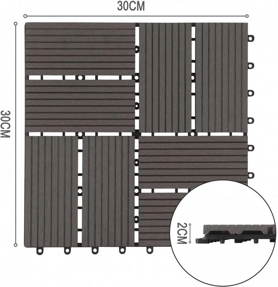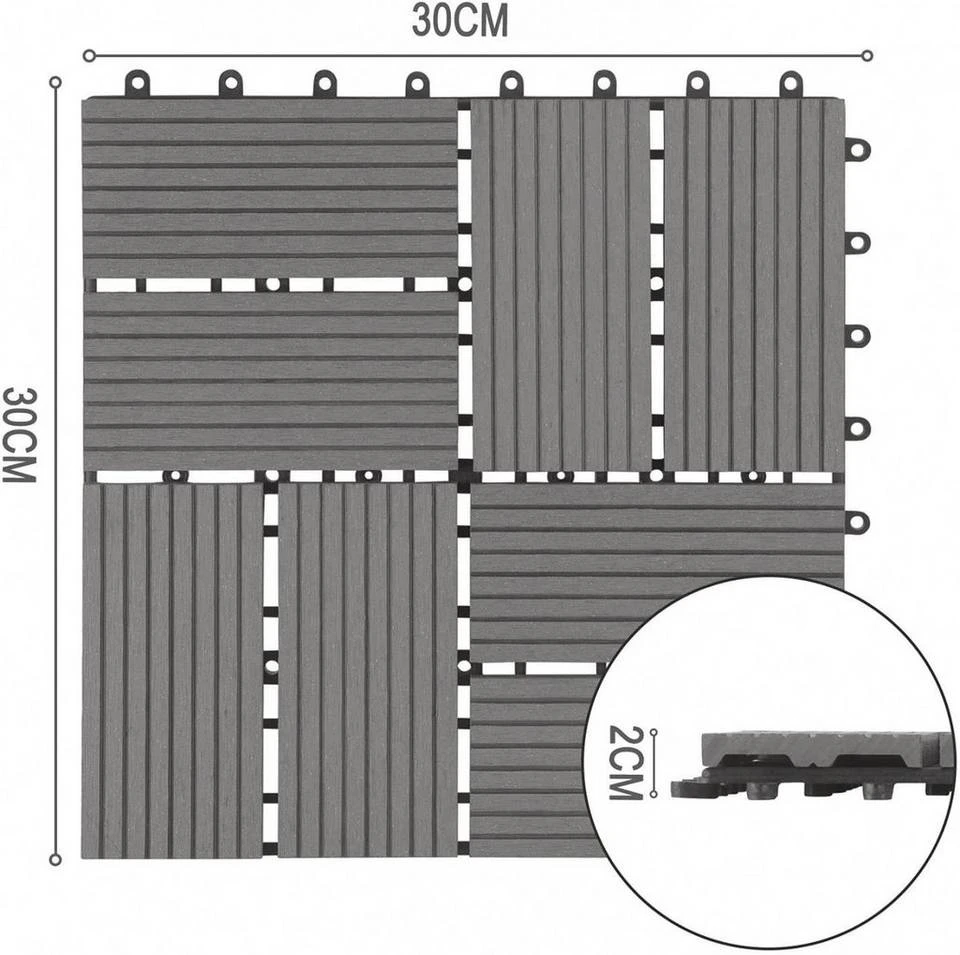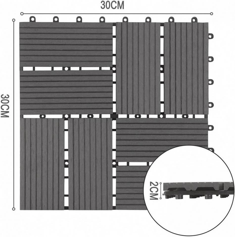 - 22 Stück WPC Terrassenfliesen Klickfliesen 30x30cm