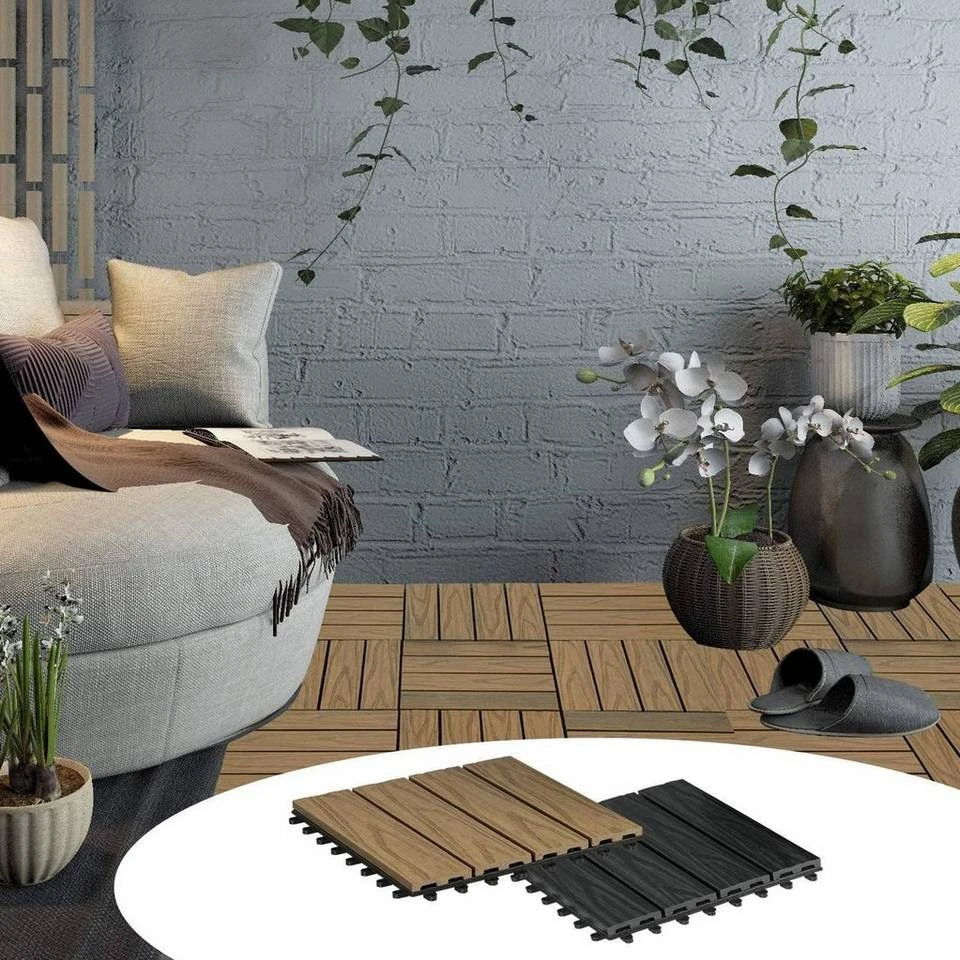 - Die Kunststoff-Fliesen in Holzoptik, perfekt für Terrassen, Balkone, Badezimmer