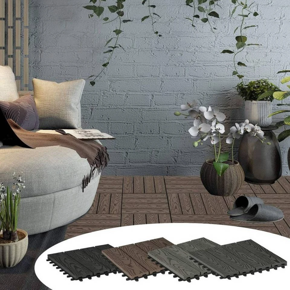 EUGAD WPC-Fliesen, WPC Fliesen Klickfliesen in Holzoptik 22 Stücke für 2m² Hellgrau Anthrazit, Braun, Coffee