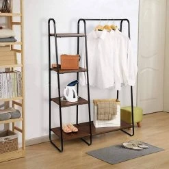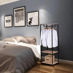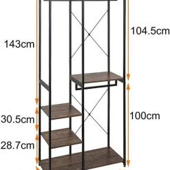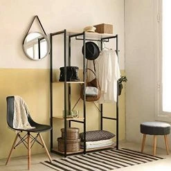 EUGAD Kleiderständer, Garderobenständer mit 7 Ablagen Schwarz-Vintage Schwarz-Hell Eiche