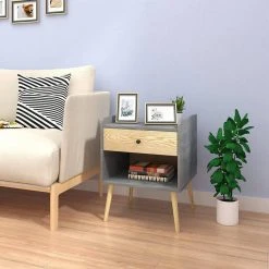 EUGAD Nachttisch, Beistelltisch mit Schublade Nachtkommode, Holzbeine MDF, Grau Weiß