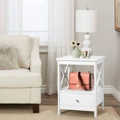 EUGAD Nachttisch, 2er-Set Beistelltisch mit Schublade Nachtkommode, Holzbeine MDF, Weiß
