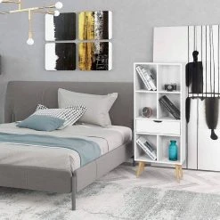 EUGAD Bücherregal, Bücherschrank Raumteiler mit Schublade, mit Fußbeine, 6 Fächer, Weiß