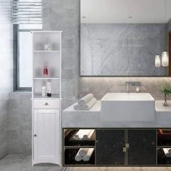 EUGAD Hochschrank Badschrank Eckschrank, Breite/Höhe: 23/165 cm, Holz, mit 1 Schubkasten