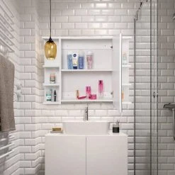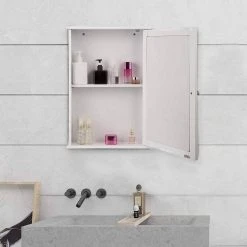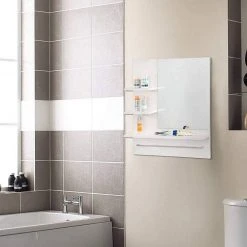 EUGAD Spiegelschrank Hängeschrank mit Ablage mit Ablage Schminkschrank aus Holz 56 x 58 x 13 cm weiß