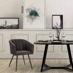 EUGAD Esszimmerstuhl, 2er-Set mit Armlehne, Retro Design, Samt, Metall Schwarz Dunkelgrau, Hellgrau
