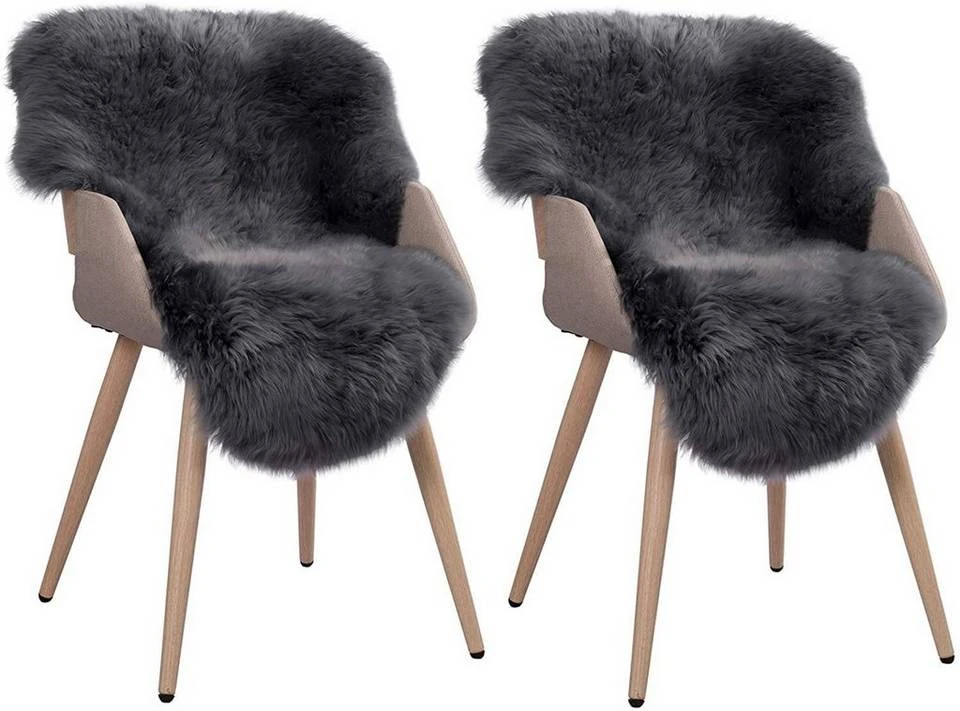 - 2er-Set Öko Lammfell echtes Longhair Fell Hellgrau